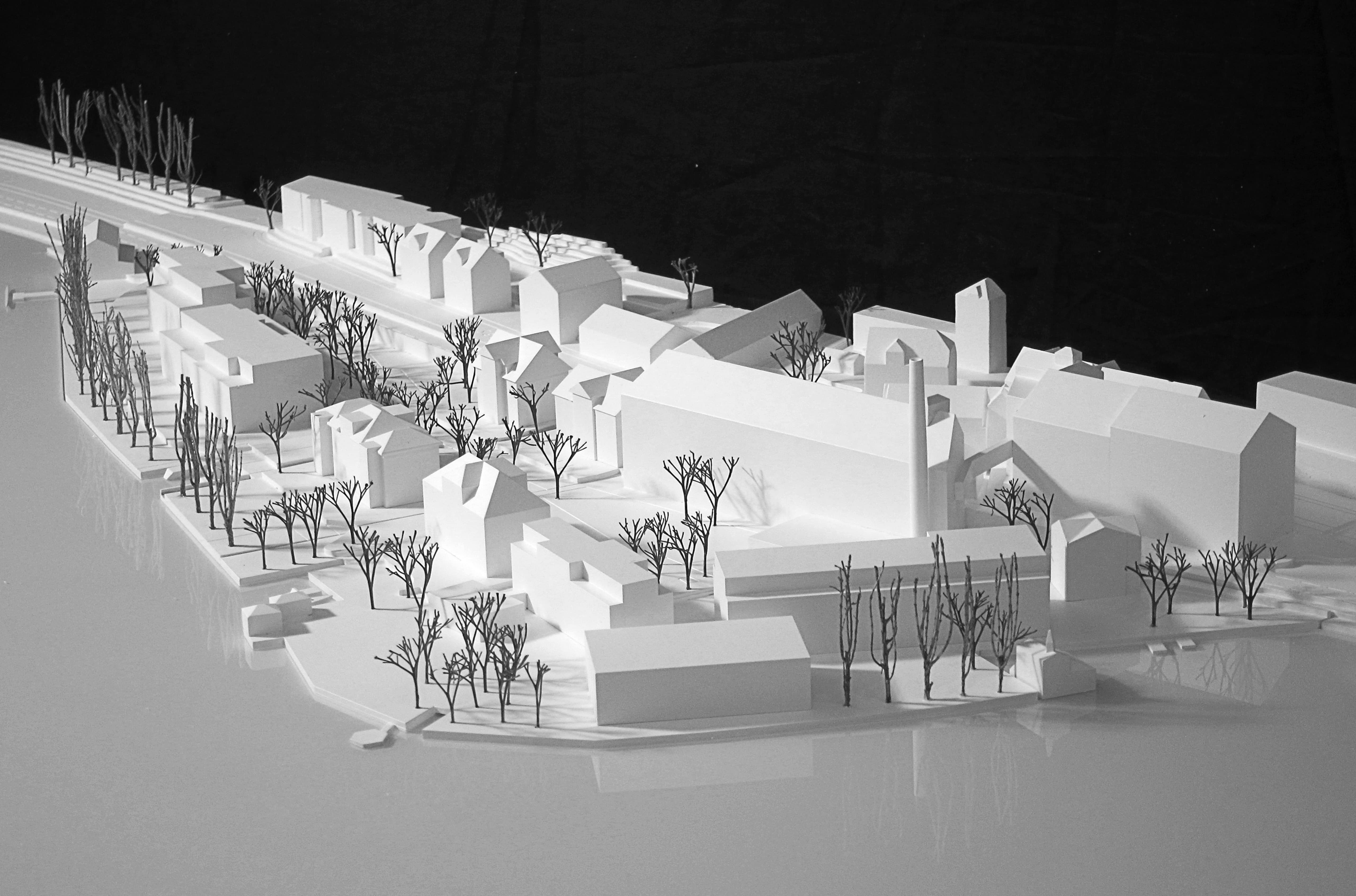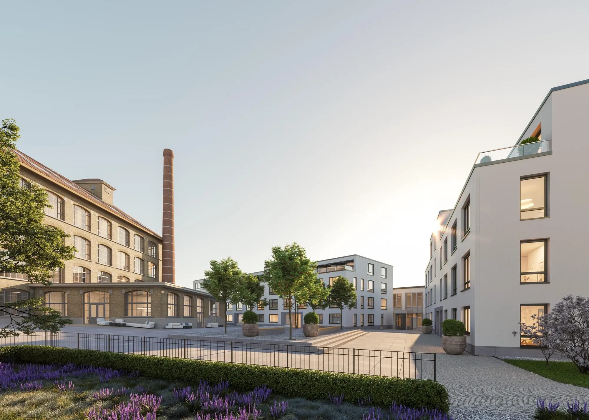 Der Fokus liegt auf einer sauberen, präzisen Ausführung und einer ruhigen, zeitlosen Raumwirkung, die sich harmonisch in das architektonische Gesamtkonzept des Areals einfügt.